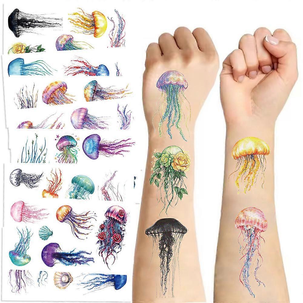 Cartoon jellyfish temporary tattoos, waterproof, for holidays, parties, and kids, disposable DIY temporary tattoo stickers.