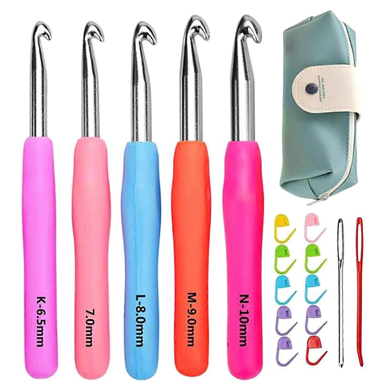 Yakbaofuo Size 6.5mm 7.0mm 8.0mm 9.0mm Crochet Hooks Set Ergonomic Grip Soft Handles Aluminum Crochet Hook Size K L M N/P In Case DIY Knitting