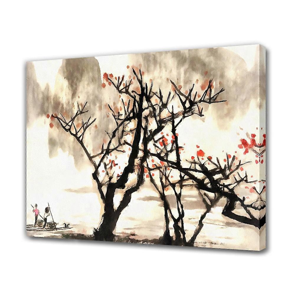 Landscape Ink Painting Canvas Poster Bedroom Decor Sports Landscape Office Room Decor Gift,Frame-style,08x12inch(20x30cm)