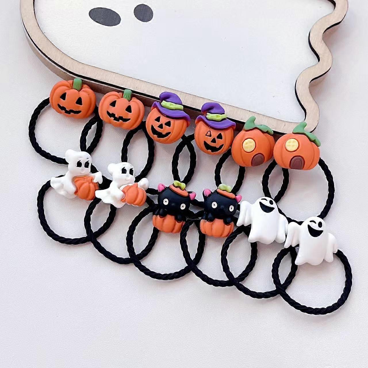 10Pcs Children's Girls' Halloween Hair Ring - Funny Pumpkin and Ghost and Bat Cat Design Suitable for Halloween Gifts for Girls