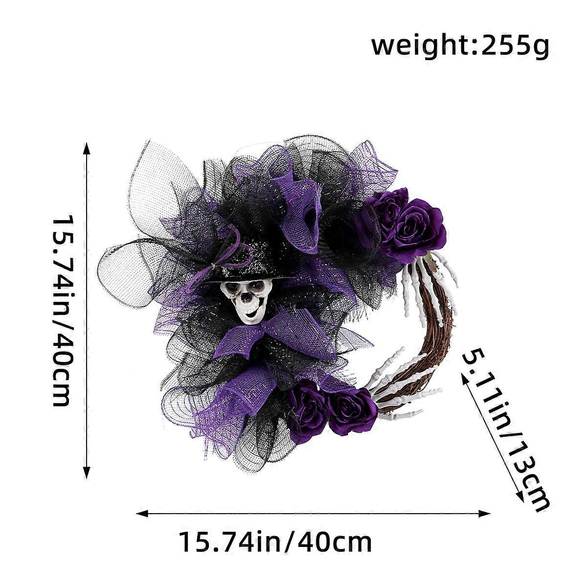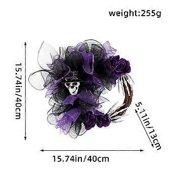 Halloween skull wreath, netting, vines, ghost head hat, party wall hanging, scene decoration.