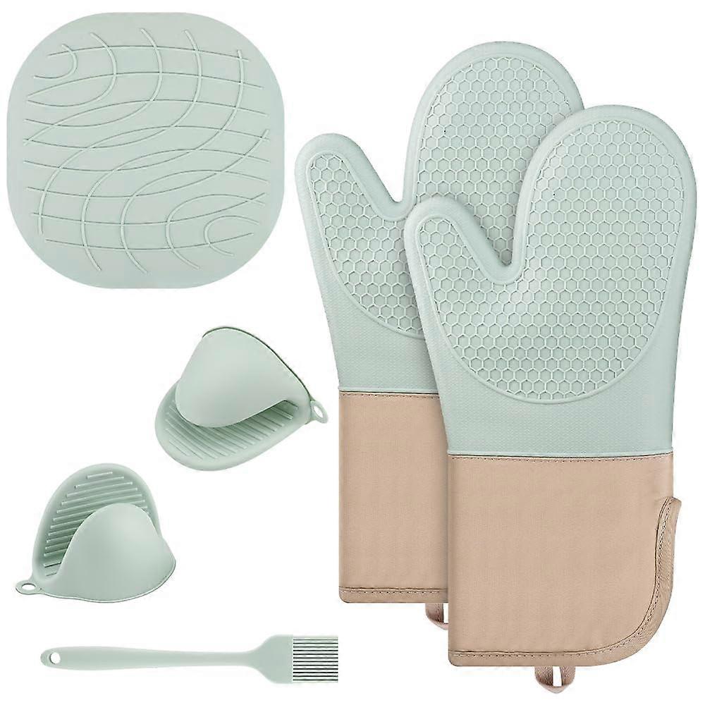 Set of 6 Kitchen Gloves, Oven Gloves, Silicone Design, Non-Slip and Heat Resistant, Suitable for Cooking, Baking and Barbecue (Mint Green)