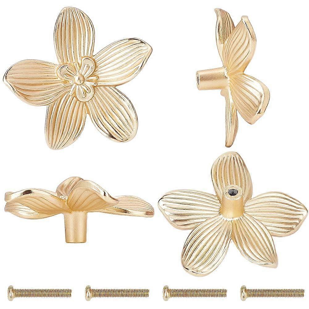 Gold flower-shaped zinc alloy drawer handles with creative petal design, suitable for kitchen cabinets and other furniture.