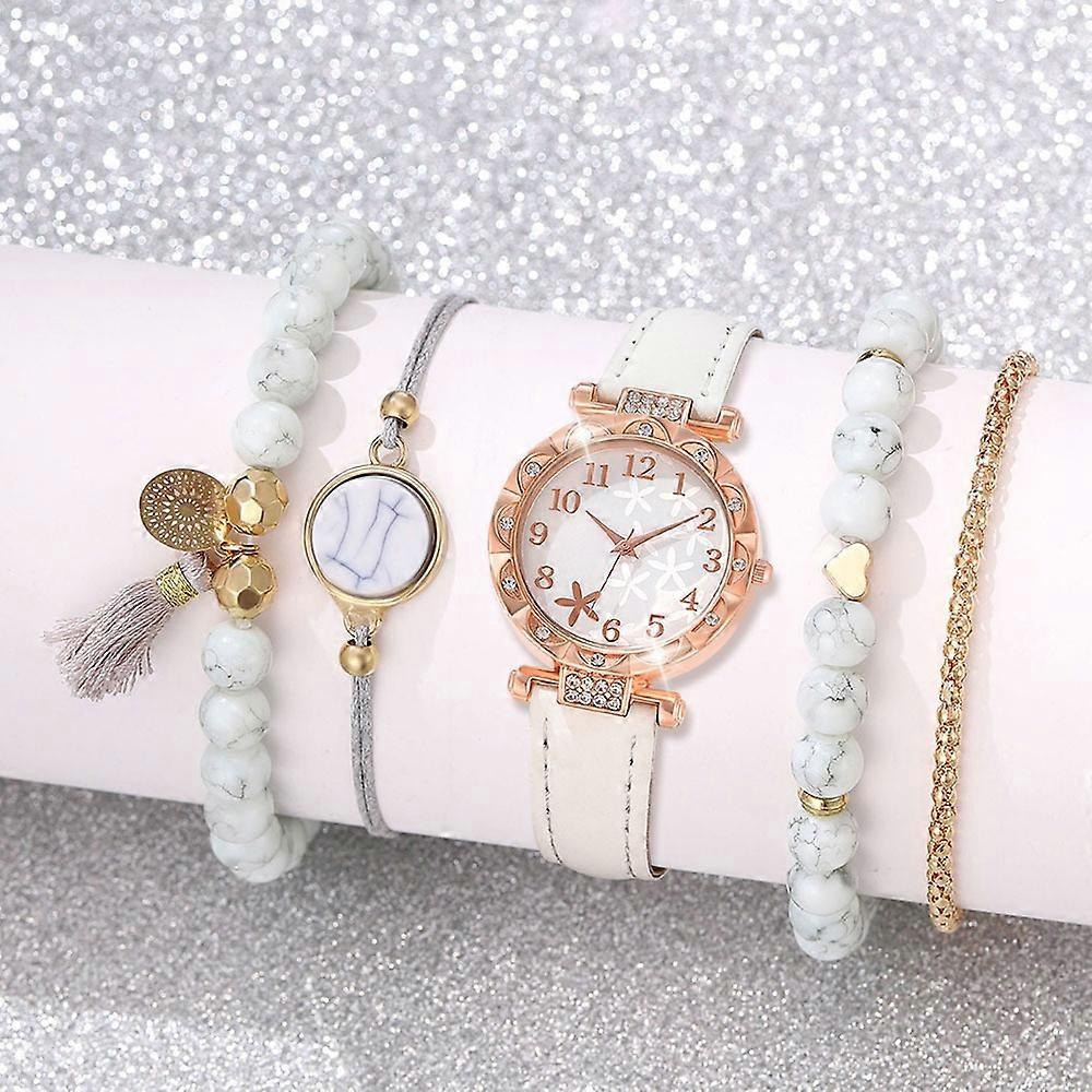 New Rhinestones Watch Jewelry Set with Leather Strap Heart Shape Watch Bracelet Set Star Digital Scale Diamond Watch Gift