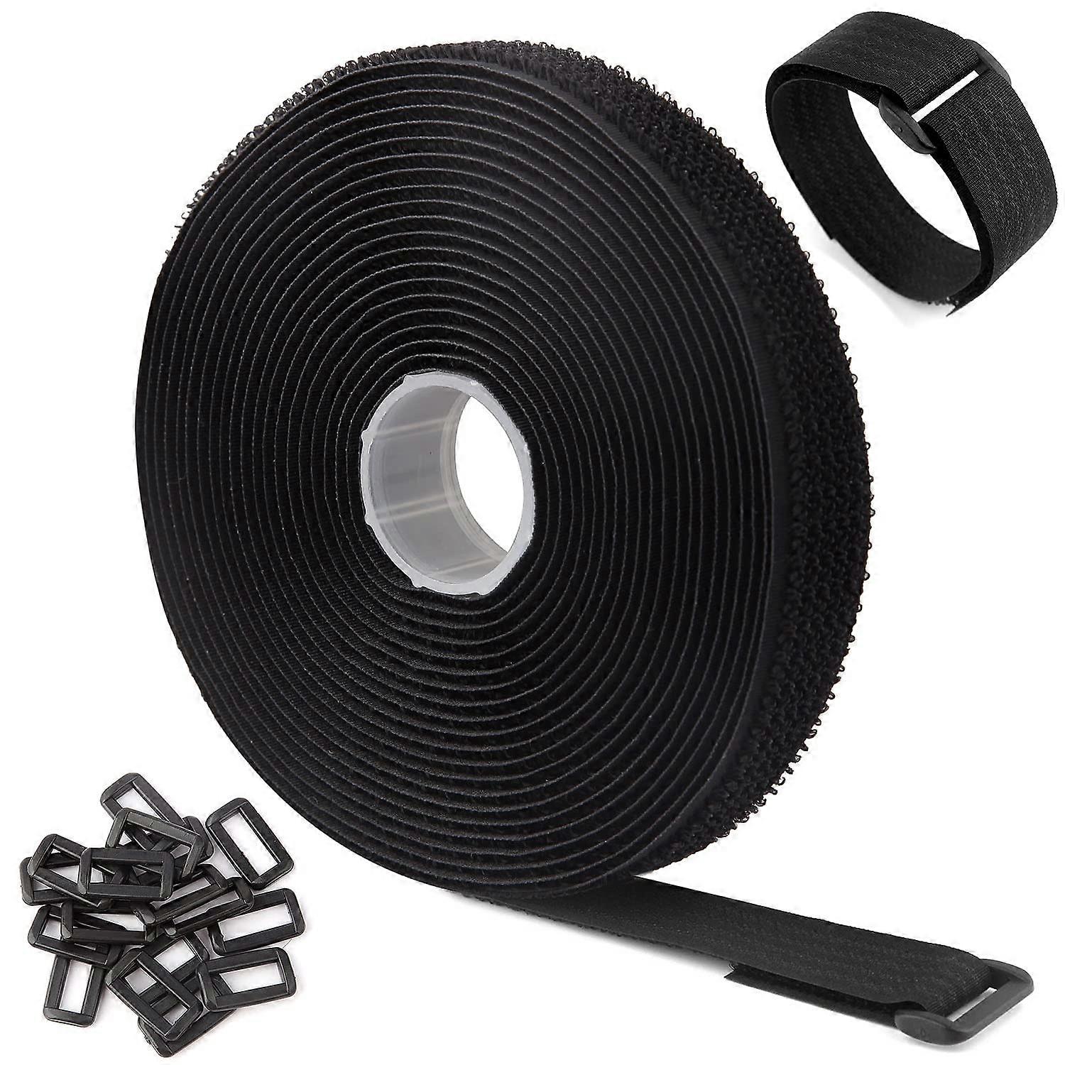 5m Black Adjustable Reusable Cable Ties/Straps with 25 Loops and Hook Fastener for Cable Management (5m x 2cm, Black)