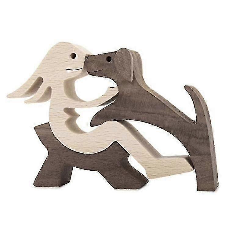 Family Puppy Wooden Ornaments Handmade Pet Woodcarving Sculpture Home Decor - DX