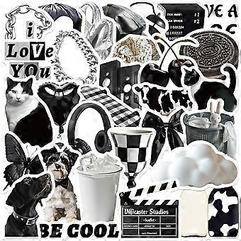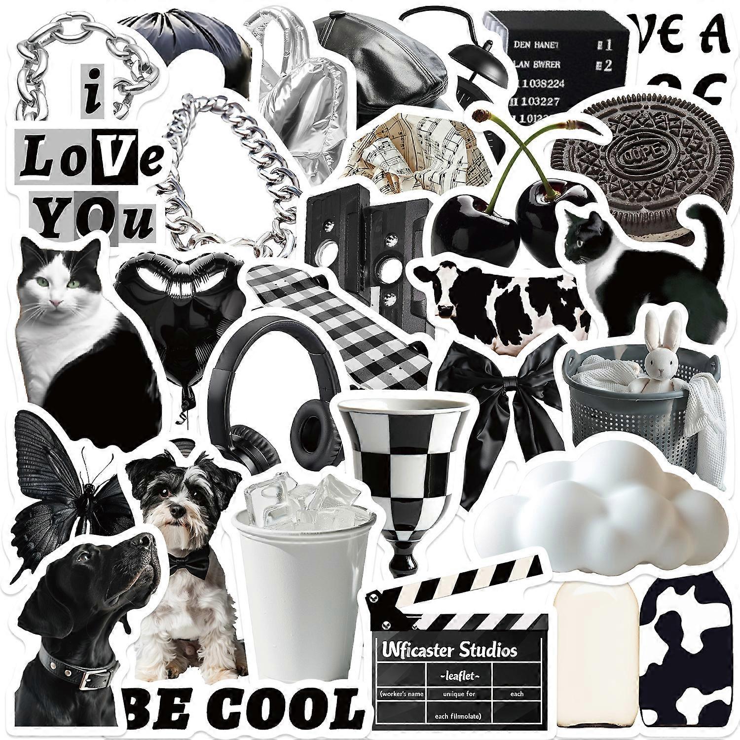 Multiple 30-sheet black and white cream-themed sticker packs, trendy and creative journal decoration materials.