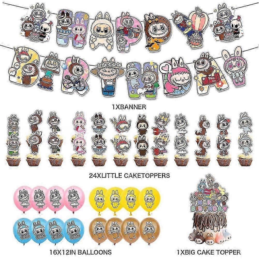 For Labubu Birthday Party Decoration Set with Banners Cake Toppers Balloons for Kids Teens Fans - DX