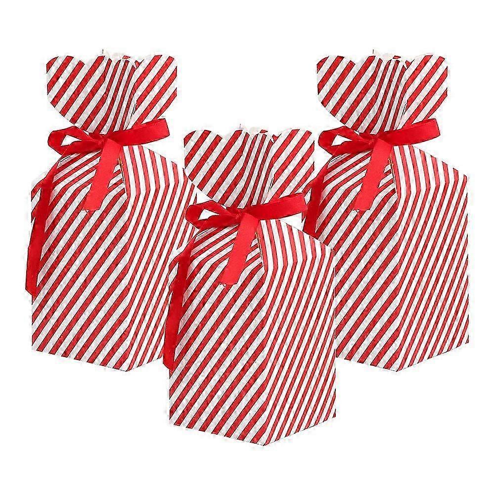 Christmas Candy/Cake Gift Box SetPackage including 50 Pcs 3D Christmas Gift Candy Boxes, 50 Pcs ribbons. Each box tied 1 ribbon, Classic Vase Shape, So cute! Candy Box Bulk made of hight quality hard paper,sturdy, not easily deformed, exquisite cutting process Perfect Christmas Gift ChoiceDIY Christmas treat boxes is a best gift for children, friends. These paper treat boxes suitable for decorating table, party food, decoration in the shop showcase, wedding and birthday party, Christmas party, school party decorations, etc Fresh and Classic DesignOur DIY Christmas Gift Boxes have lovely pattern - Red and white stripes, increases warm and sweet and Happiness Christmas atmosphere to your home. Perfect for bridal shower, engagements, mother's day, anniversaries,valentine's dayetc. Easy to AssembleCandy sweet gift box party favor comes flat packaged, easy to assemble in seconds. Small (After folding): Approx. 2 x 2 x 4.7inch/ 5x 5x 12cm (LxWxH). Medium:Approx. 2 x 2 x 4.7inch/ 5x 5x 12cm (LxWxH).It's enough big to put candy or chocolate cup cakes. Multi-Functional BoxColourful Christmas stripes pattern candy box perfect for sweets, Chocolates, a charm, bracelet, ring, party favors or any small gift that you wish to give your guests.