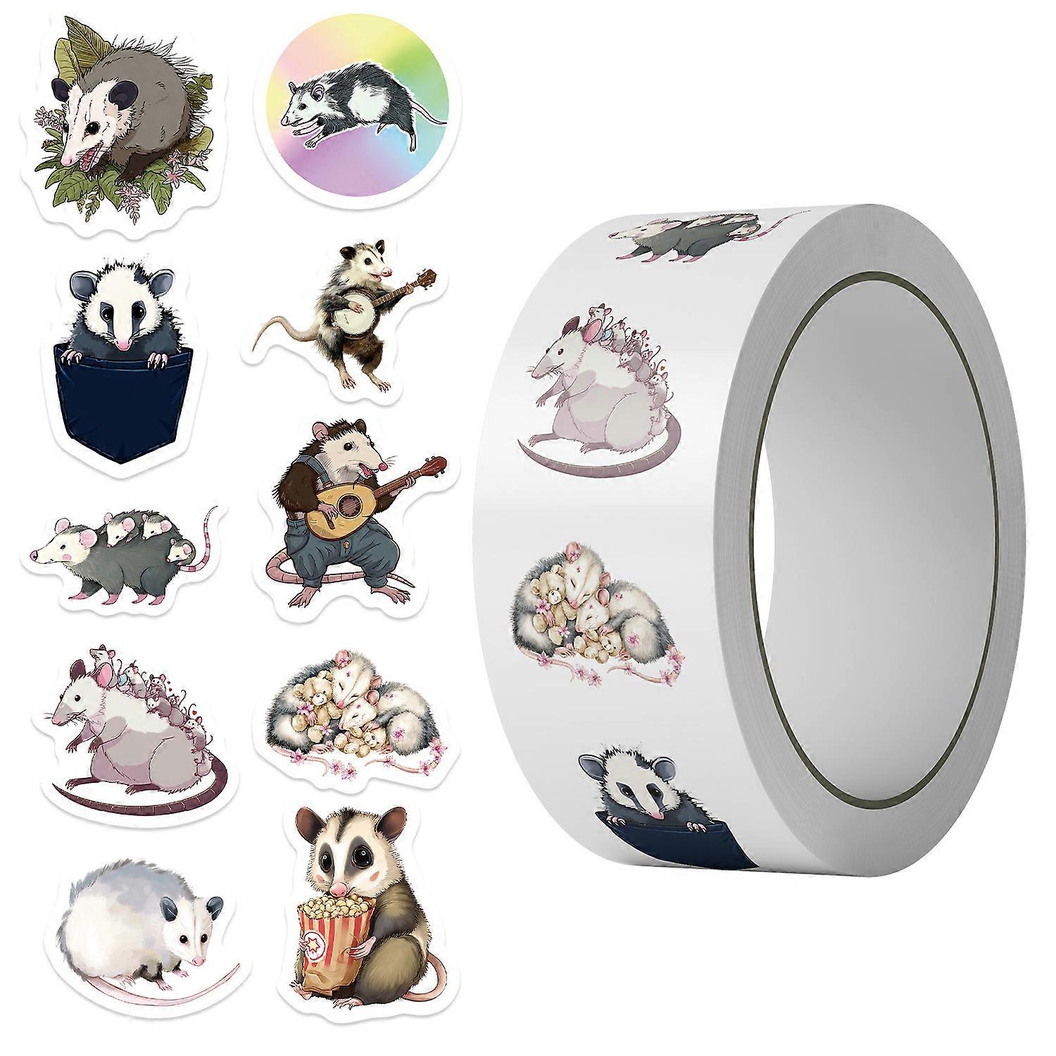 500 sheets/roll of washi tape, featuring a cartoon possum friend, perfect for journaling, decoration, and envelope stickers.