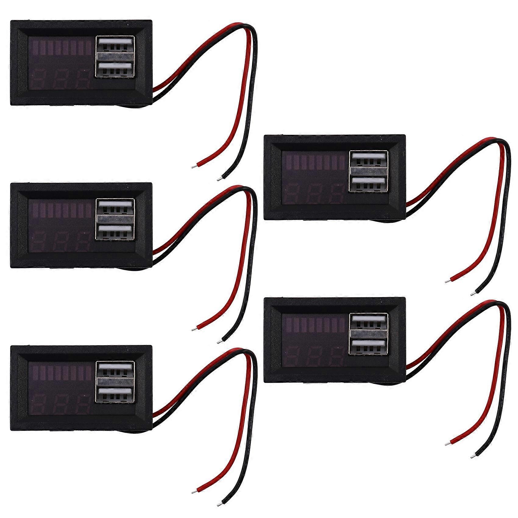 5X Red Led Digital Display Voltmeter Meter Volt Tester Panel for Dc 12V Cars Vehicles USB 5V2A Outpu