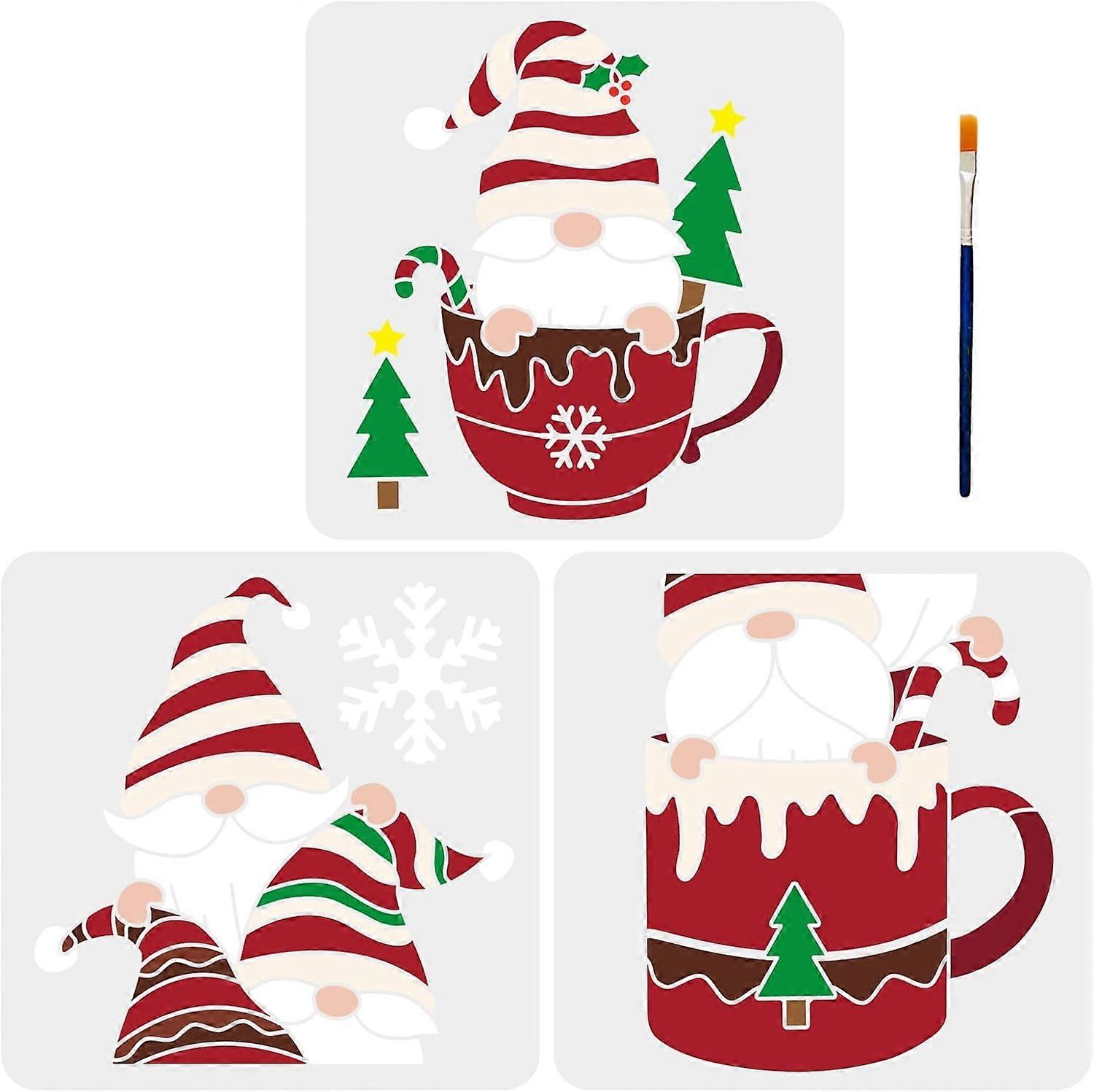 3pcs Christmas Gnome Stencils 11.8×11.8in, Compatible with DIY Xmas Decor, Reusable with Paint Brush