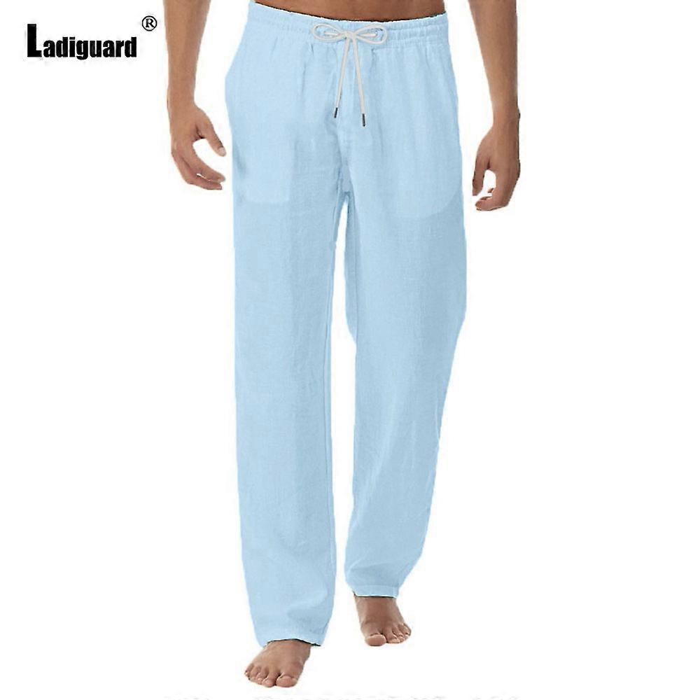 White Black Soft Pocket Beach Cotton Linen Pants Men's Ankle-Length Trouser Plus Size Mens Casual Straight Drawstring Sweatpants