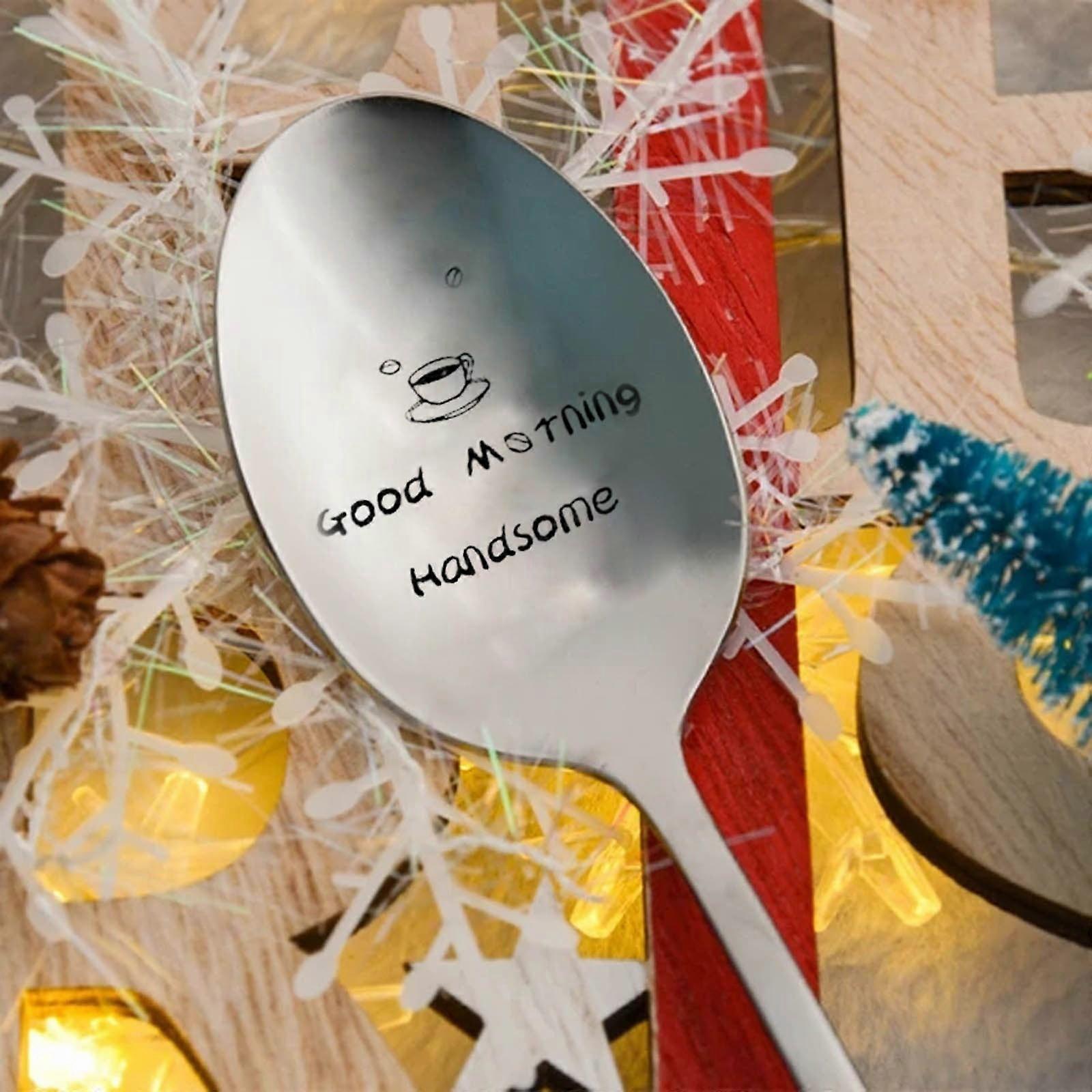 Tableware Engraved Spoon Best Present For Husband Madam Family And Friends Tableware Printing Stainless Steel Spoon Features: Engraved Spoon Best Present for Husband Madam Family and Friends Tableware This High-quality stainless steel spoon engraved as "Love You More Than You Know" "Let's Have Coffee Together Forever" "You Will Always Be My Friend" "Good Morning, Handsome" ♥Gift♥ Perfect for any gift giving occasion. Especially Valentines Gift / CHRISTMAS GIFT , or just surprise her and let her know how much she is loved with this beautiful gift! The most gift in the world.Constant reminder of HOW MUCH she mean to YOU. ♥Gift♥ Perfect for any gift giving occasion. Especially CHRISTMAS GIFT, or just surprise her and let her know how much she is loved with this beautiful gift! The most gift in the world.UNIQUE gift for your SPECIAL one, you won't find in the malls. Our Spoons are full durability and credibility-we in prime quality! Our entire product line is well designed, unique and high-quality. Product Description: Tableware Engraved Spoon Best Present for Husband Madam Family and Friends Tableware Printing stainless steel spoon Material: 401 Stainless steel The package contains: 1×Printing stainless steel spoon Length Size:19.5cm/7.68in Color: as the picture shows, (Due to the difference between different monitors, the picture may have slight color difference. please make sure you do not mind before ordering, Thank you!) Package weight: 31g Package size: 20x5x3cm,(Please allow 1-3mm error due to manual measurement. please make sure you do not mind before ordering.) Our Spoons are full durability and credibility-we in prime quality! Our entire product line is well designed, unique and high-quality. ♥Gift♥ Perfect for any gift giving occasion. Especially Valentines Gift / CHRISTMAS GIFT , or just surprise her and let her know how much she is loved with this beautiful gift! The most gift in the world.Constant reminder of HOW MUCH she mean to YOU. ♥Gift♥ Perfect for any gift giving occasion. Especially CHRISTMAS GIFT, or just surprise her and let her know how much she is loved with this beautiful gift! The most gift in the world.UNIQUE gift for your SPECIAL one, you won't find in the malls. Engraved Spoon Best Present for Husband Madam Family and Friends Tableware This High-quality stainless steel spoon engraved as