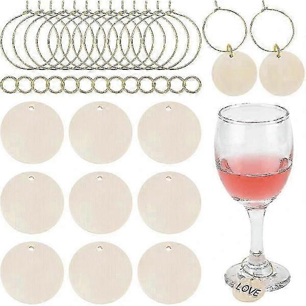 30pcs Wooden Wine Glass Tag Wine Glass Identification Markers Tags With 30pcs Brass Rings Wine Glass Jewelry with 50pcs Openable Rings for Glass