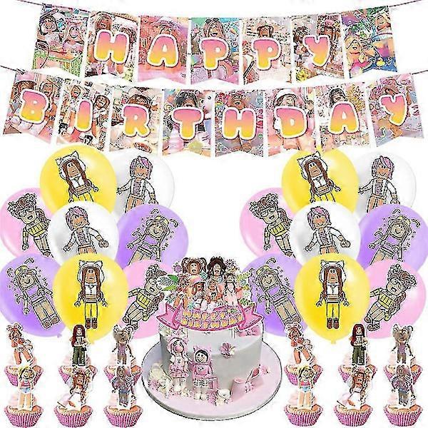 Pink Roblox Gaming Ladies Birthday Party Decor Balloon Banner Cake Decorations Set Party Supplies Kit Party Favor -yyds