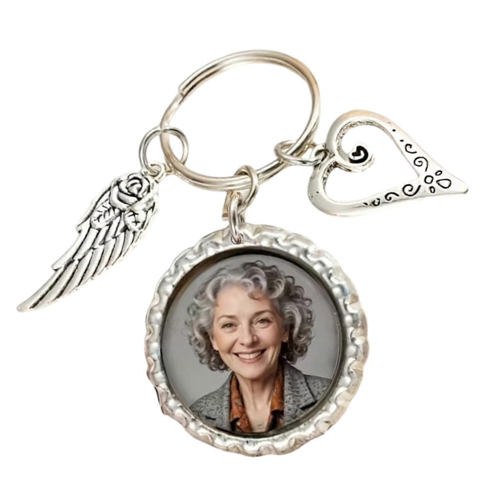 Elegant Rose Bouquet Keychain With Interchangeable Photo Frame Stainless Steel Fashion Jewelry Accessory Silver