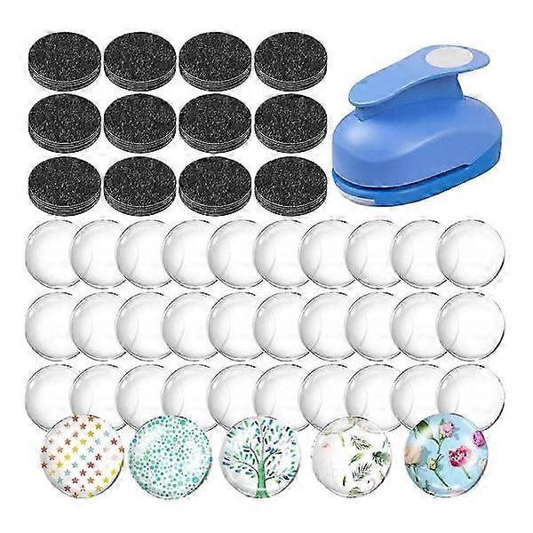 Glass Fridge Magnet Set Includes 1-inch Paper Punch, Round Ferrite Ceramic Magnets for DIY