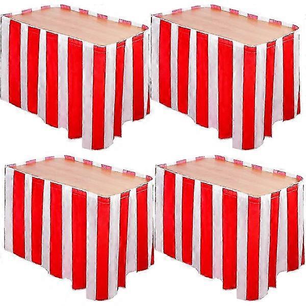 4-pack Red and White Striped Tablecloths Carnival Circus Table Skirt