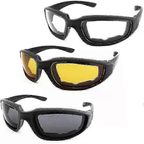 3 Pairs Motorcycle Goggles Padded Safety Glasses UV Protection Dustproof Windproof Motorcycle Sunglasses For Outdoor Activities