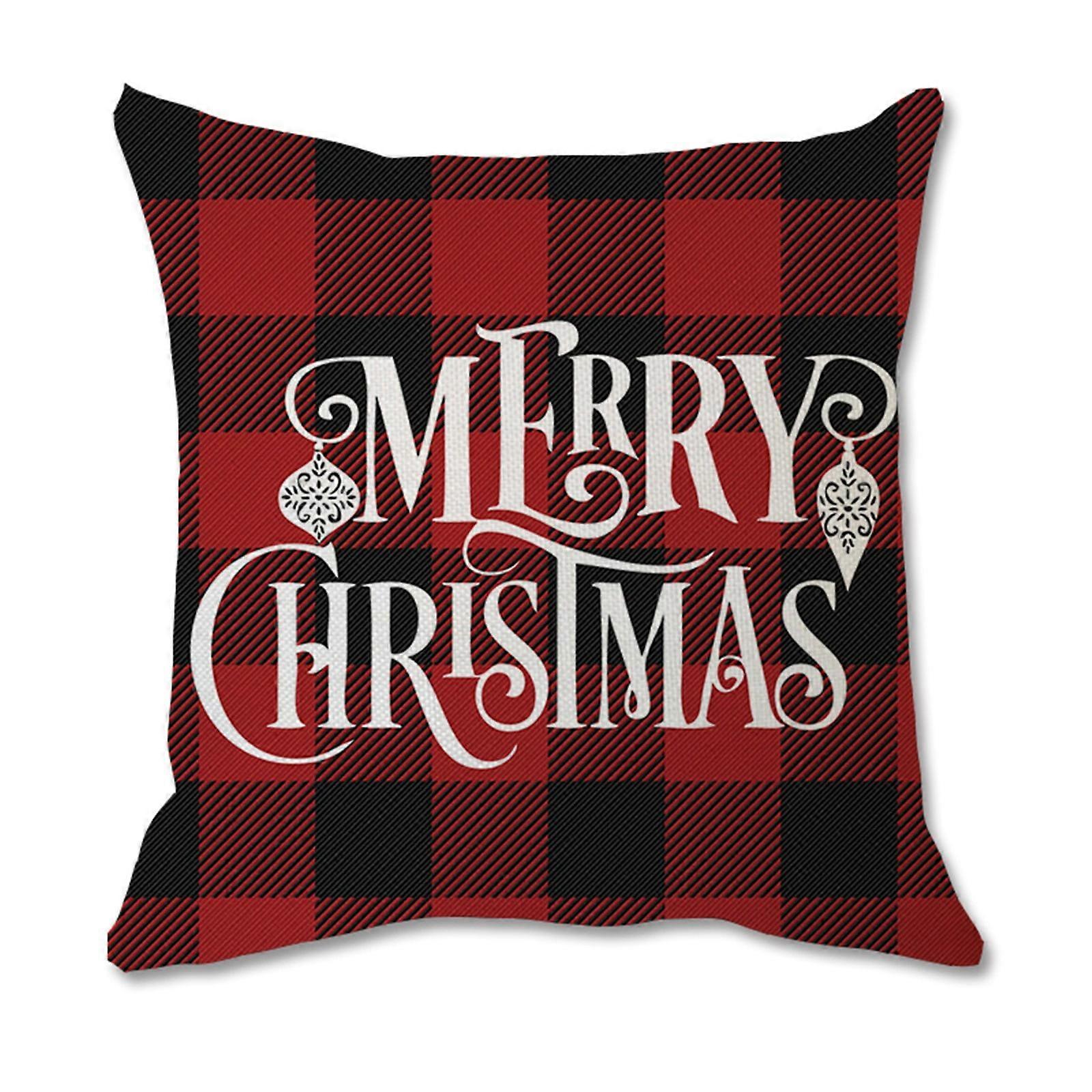 Christmas Throw Pillow Covers 18x18, Red Black Plaid Snowflake Print, Indoor Xmas Decor for Home Party