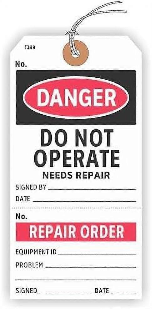 Danger - DO NOT Operate - Repair Order s, Numbered with Tear-Off Stub and String, 5.75" x 2.875", White Cardstock - Pack of 25 s
