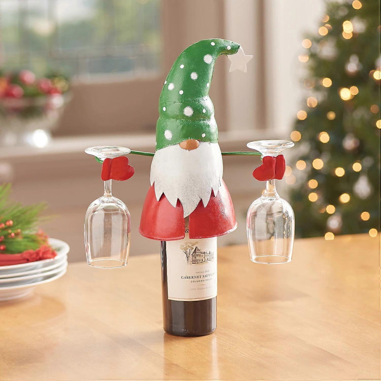 Christmas Wine Bottle Holder - Santa Claus Rack Compatible with Wine Glasses, Perfect for Home, Kitchen, Bar & Cellar Decor