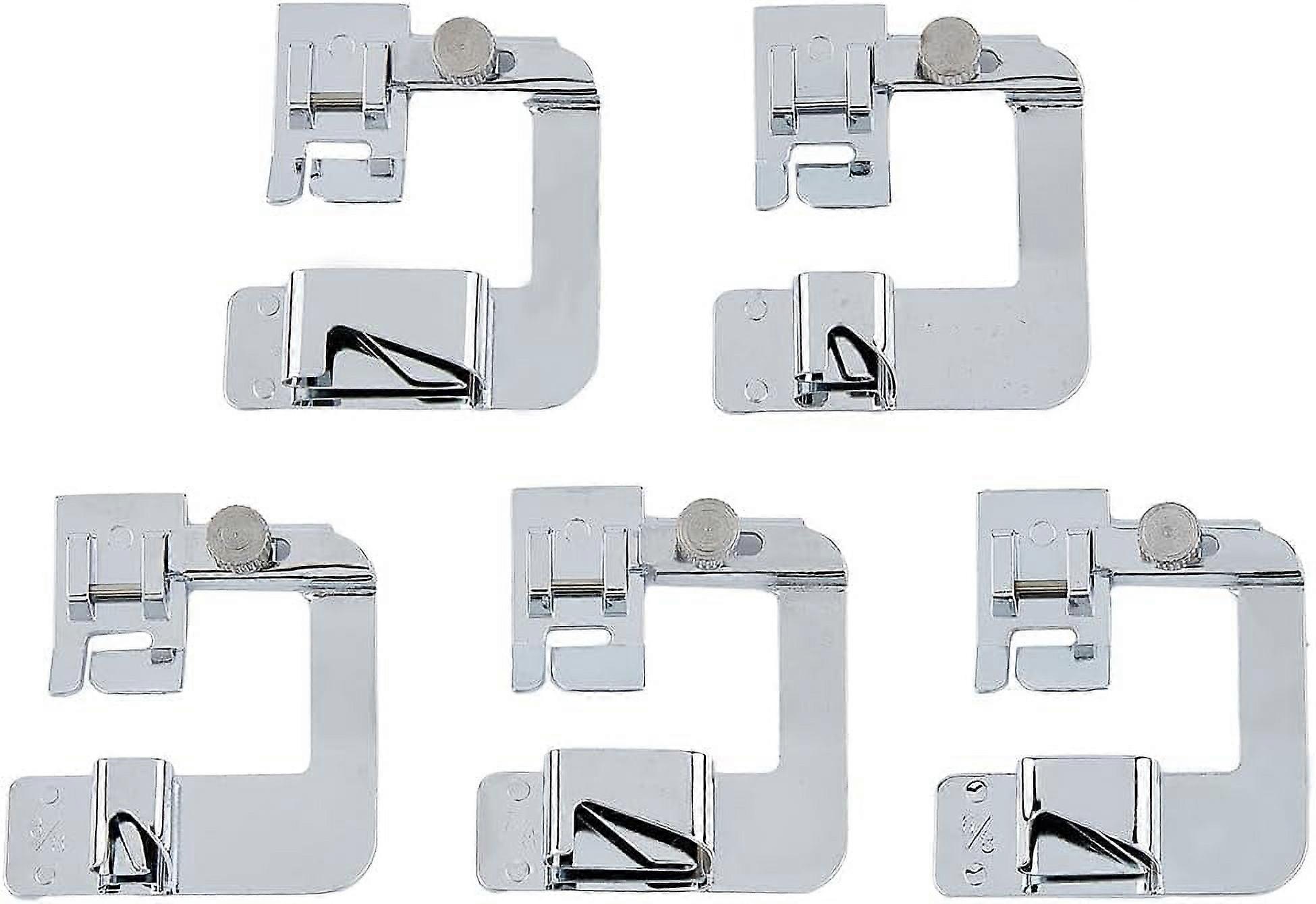 5 Styles Alloy Wide Rolled Hem Foot for Sewing Machines - Adjustable Edge Guide Presser Foot, Compatible with Domestic Sewing Machine Accessories