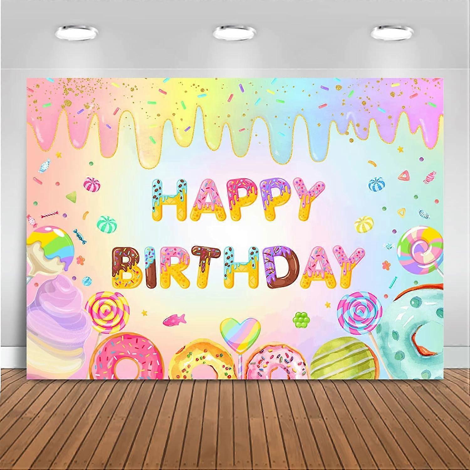Donut Happy Birthday Backdrop for Girls Sweet Candy Birthday Party Decorations Background Cake Table Banner