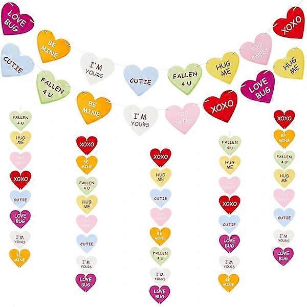 Sets Valentines Day Banner Garland with 72-Pack Hearts, Candy Colored Hearts