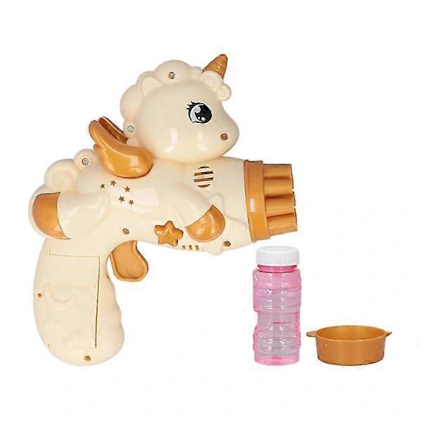 Automatic 9-Hole Bubble Machine Toy Unicorn Design Outdoor Play Handheld Electric Bubble Gun Durable Plastic 3+ Years for Kids Beige