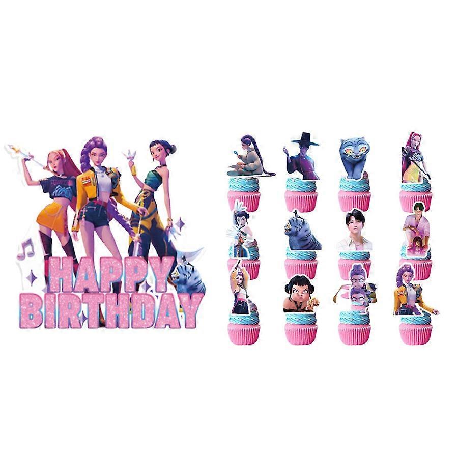 1pc + 12pcs KPop Demon Hunter Cake Topper Birthday Party Decoration Cake Card Fruit Plug-in Birthday Party Supplies Kids Gift