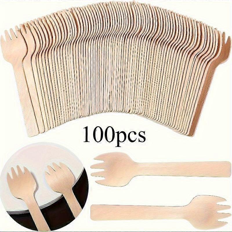 100pcs Disposable Mini Fork, Small Fork Spoon Tableware Mini Cutlery Cake Dessert Ice Cream Fork Spoon for Mardi Gras, Graduation Season, Bi