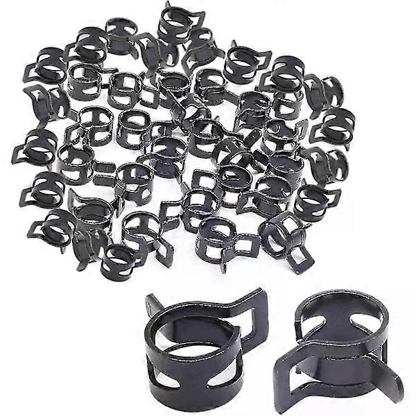 50pcs 0.39" 10mm spring band type clamps, fuel hose clamps fasteners black