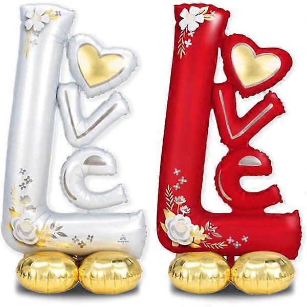 2 standing love balloons, 109 cm thick large gold love red love letters