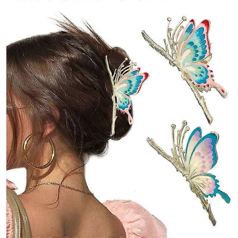 Luxora Butterfly Hair Claw Clips for Women - 2 Pcs Large Non-Slip Metal Clips, Cute Hair Accessories for Gifts and Everyday Use