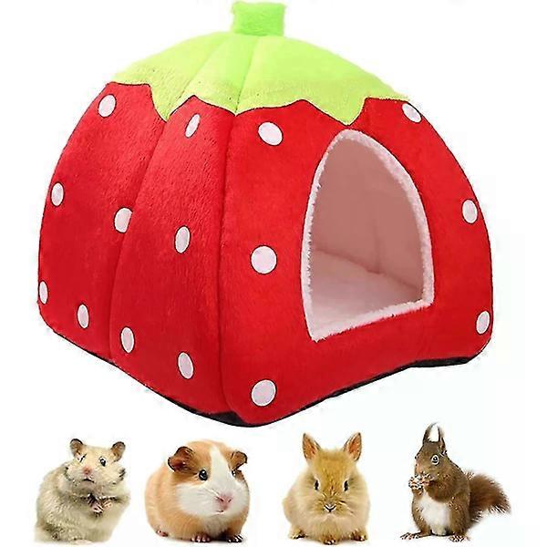 Guinea Pig House Hamster Bed, Warm Winter House for Small Animals, Non-Slip Strawberry House for Hedgehog with Removable Cushion, Hiding Place Cage C