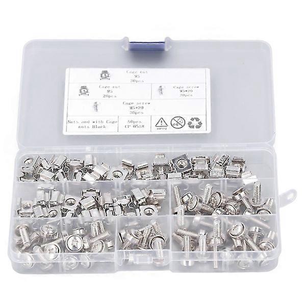 50 Sets Cage Nut M5 M5x20 Screw Kit Nickel Plated Iron Metric Square Hole Rack Mounting for Marine Yacht RV