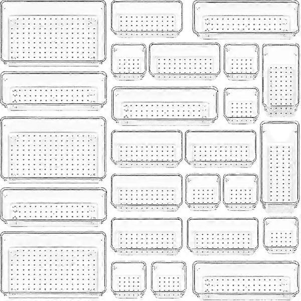 25pcs Clear Plastic Drawer Organizers Set, 4 Sizes Versatile Bathroom and Makeup Drawer Organizer Trays