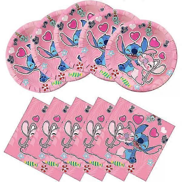 40 pcs Pink Lilo and Stitch Party Supplies, Stitch Party 20 Plates and 20 Napkins, Lilo and Stitch Girl Party Decoration Supplies