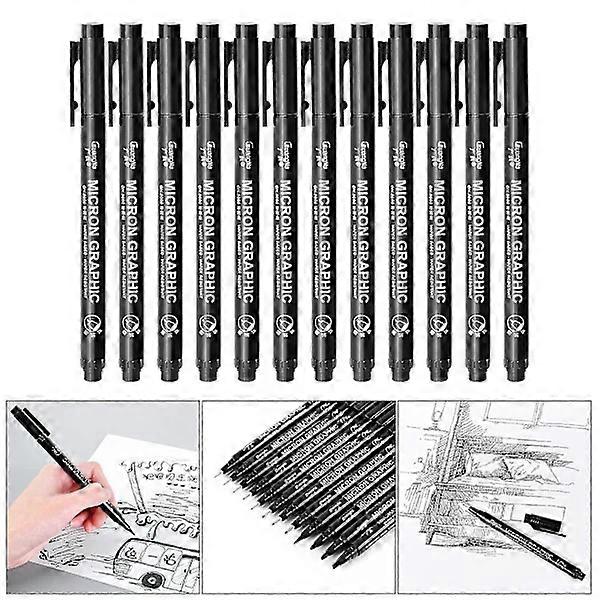 6/9/12 pcs Fineliner Pens Pigment Markers Waterproof Ink Art Sketch Manga - Black