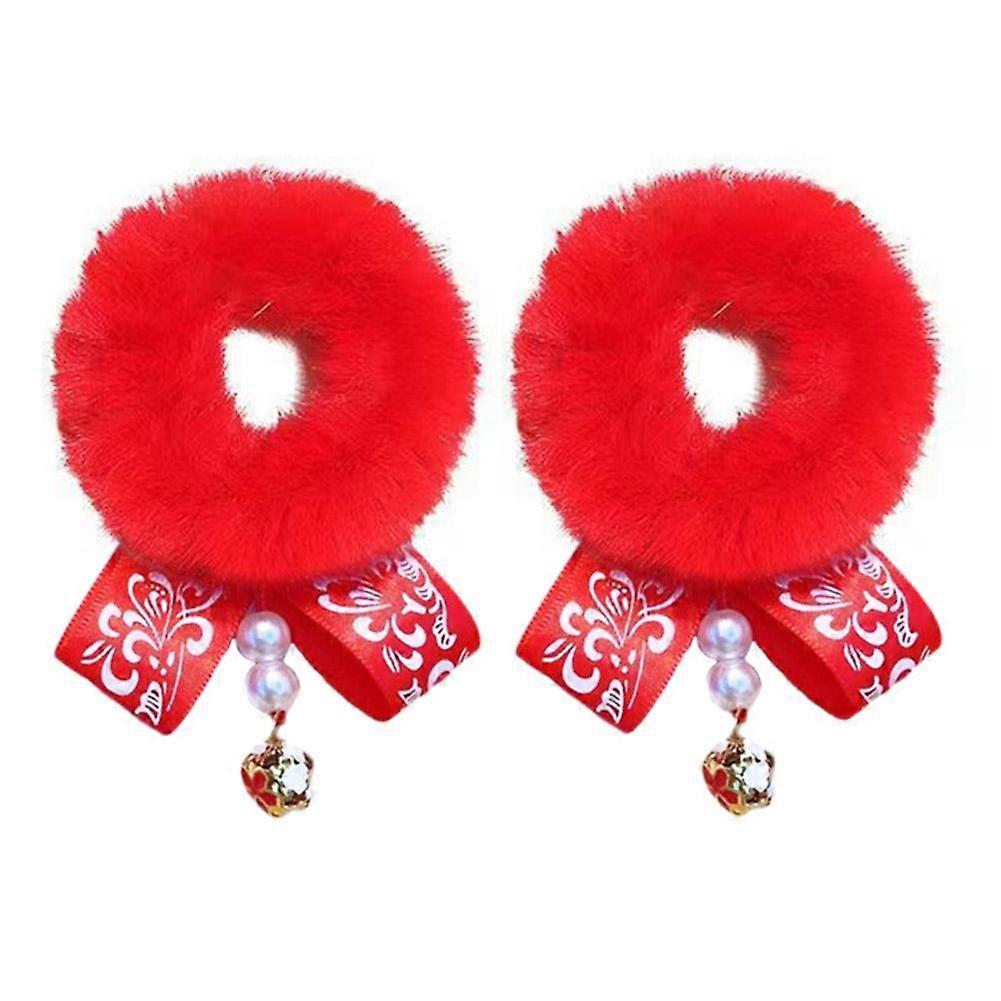 For Baby Chinese Hanfu Plush Hair Ropes Red New Year Hair Accessories with Fur Balls for Parties