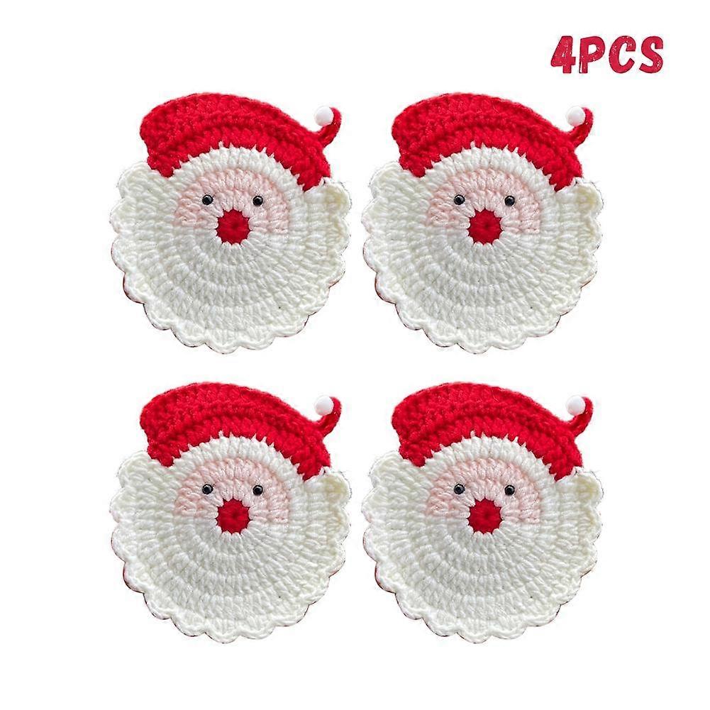 Description 1. Festive Santa Claus Design: Bring the joy of the holiday season to your home with these adorable Santa Claus themed coasters. Their charming and unique design is perfect for Christmas decorations and adds a whimsical touch to any table setting, spreading cheer with every sip. 2. Premium Cotton Material & Ideal Size: Crafted from high-quality cotton, these coasters offer a soft touch and excellent protection for your faces. Each coaster measures approximately 11 cm x 11 cm (4.33" x 4.33"), perfectly sized for a variety of cups, mugs, and glasses. 3. Table Face Protection: Designed to safeguard your furniture from unsightly water rings, heat marks, and spills. These versatile drink mats provide reliable insulation for both hot and cold beverages, preserving the beauty of your tables, countertops, and desks. 4. Convenient Pack of 4: Each order includes a set of 4 delightful coasters, providing ample coverage for gatherings or daily use. This makes them a thoughtful and practical gift for friends and family during holidays, housewarmings, or any special occasion. 5. Versatile Home Decor Accent: Elevate your home decor with these charming additions. Their intricate knitted texture adds a cozy and welcoming feel to your living space, making them ideal for coffee tables, dining tables, kitchen islands, and even office desks. Package list 4 Coasters