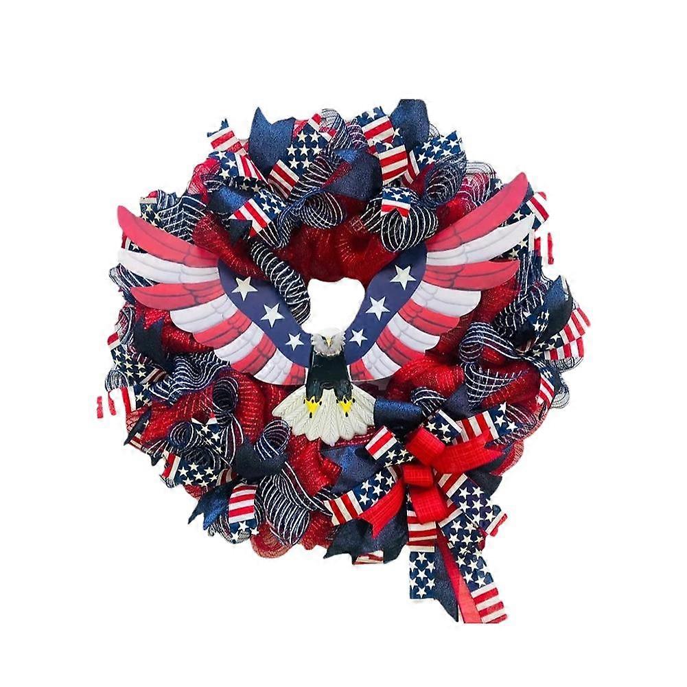 Independence Day Wreath Patriotic Fabric Decor For Front Door Memorial Day July 4th Outdoor Indoor Handmade Holiday Decoration