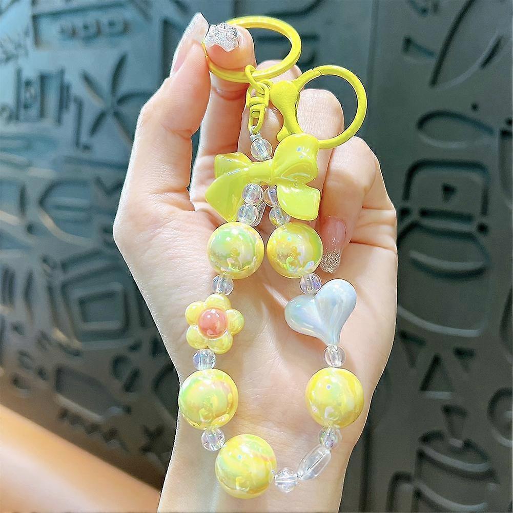 Porte-clés pendentif en acrylique coloré, joli nœud en perles et breloques en forme de cœur, accessoire de sac durable et polyvalent