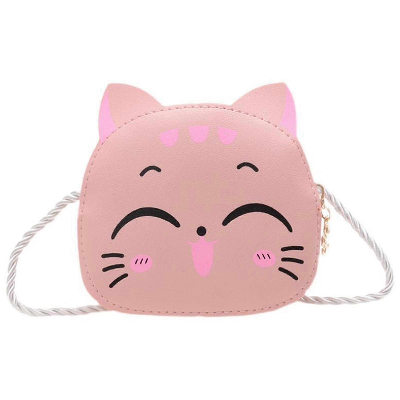 Cute Smiley Cat Leather Messenger Bag For Kids Adjustable Strap Zipper Closure Lightweight Mini Purse For Girls Travel Party