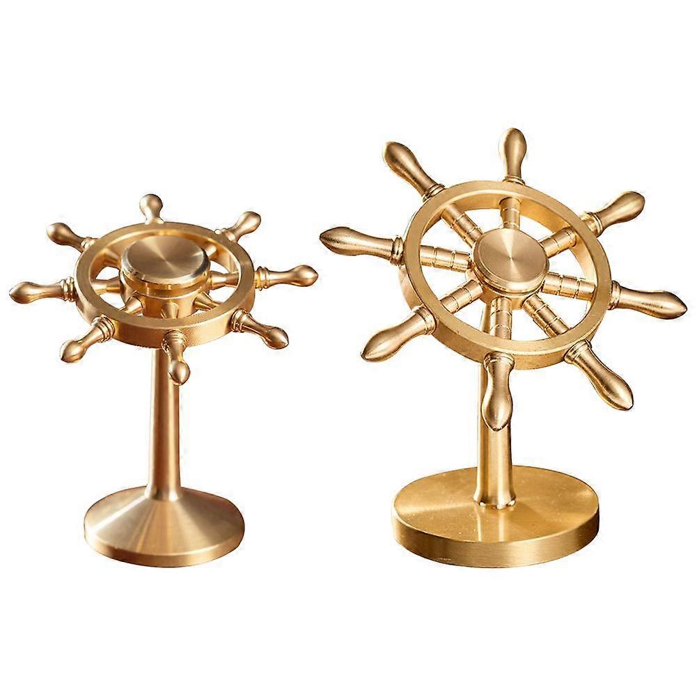 Vintage Brass Ship Steering Wheel Nautical Desk Decor Mediterranean Style Boat Sculpture