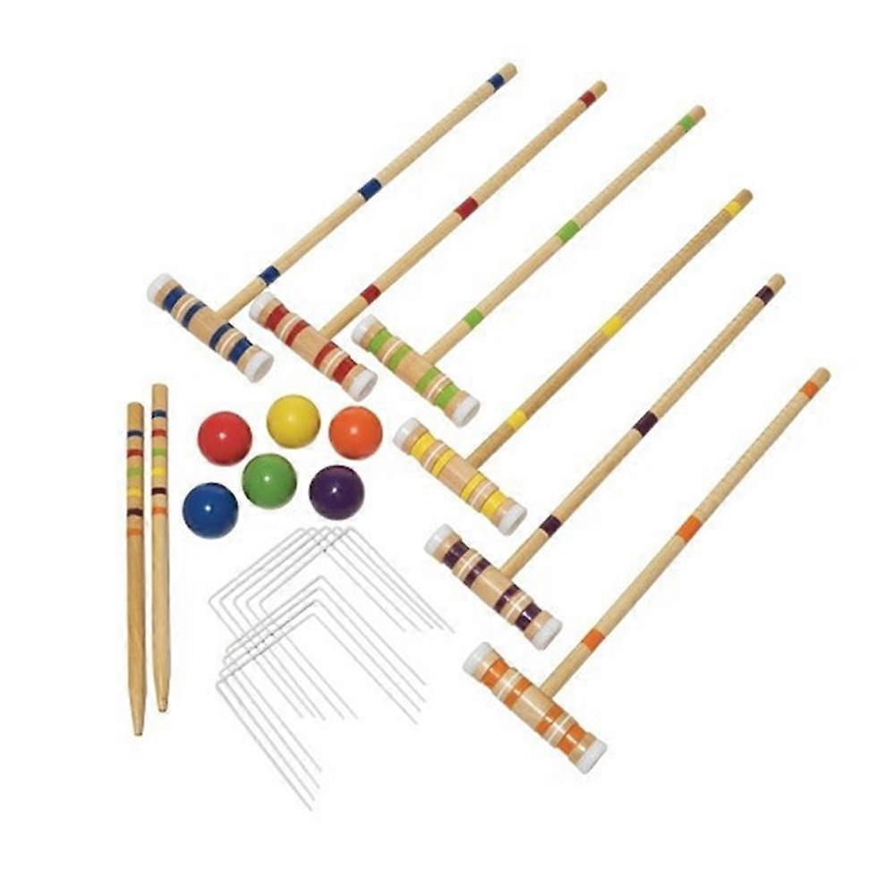 Classic Wooden Croquet Set For 4-6 Players Indoor Outdoor Family Game With Mallets Balls