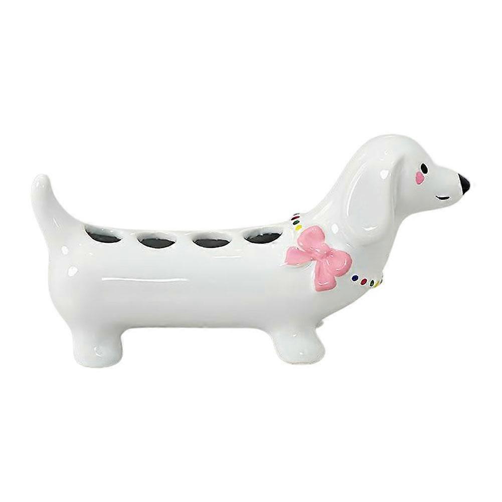 For Electric Toothbrush Holder Ceramic Dachshund Design 4 Compartments Waterproof Bathroom Organizer Cute Countertop Storage
