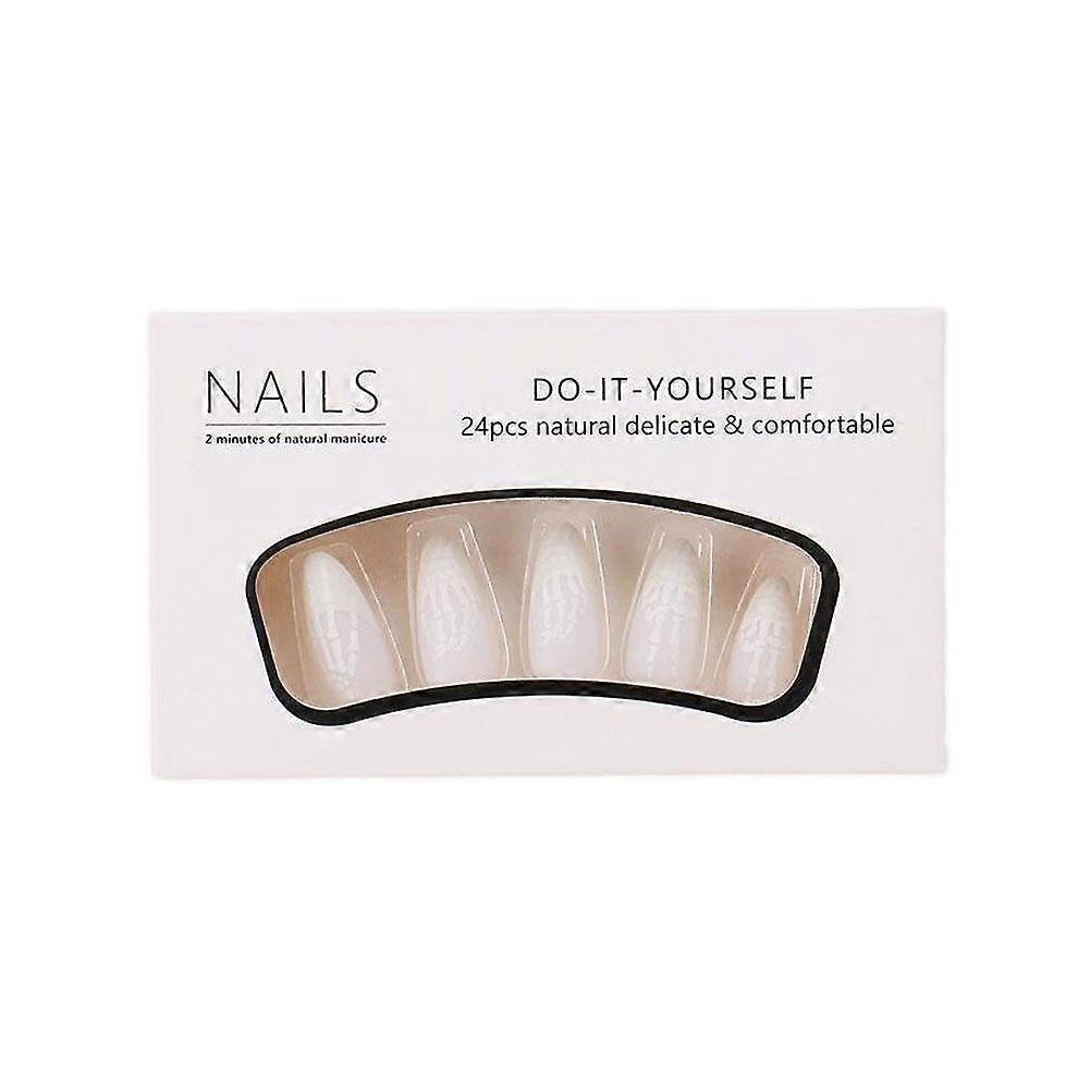 Creamy White Gradient Press On Nails 24PC Almond Shape Halloween Glue Free Kit Quick Easy Manicure Set Reusable Eco Friendly